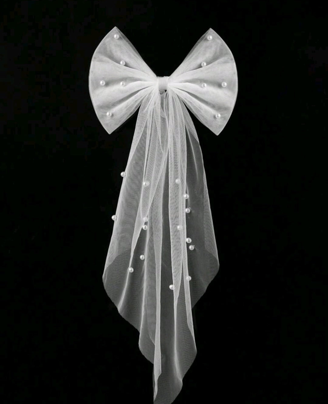 1pc white faux pearl bow hair clip