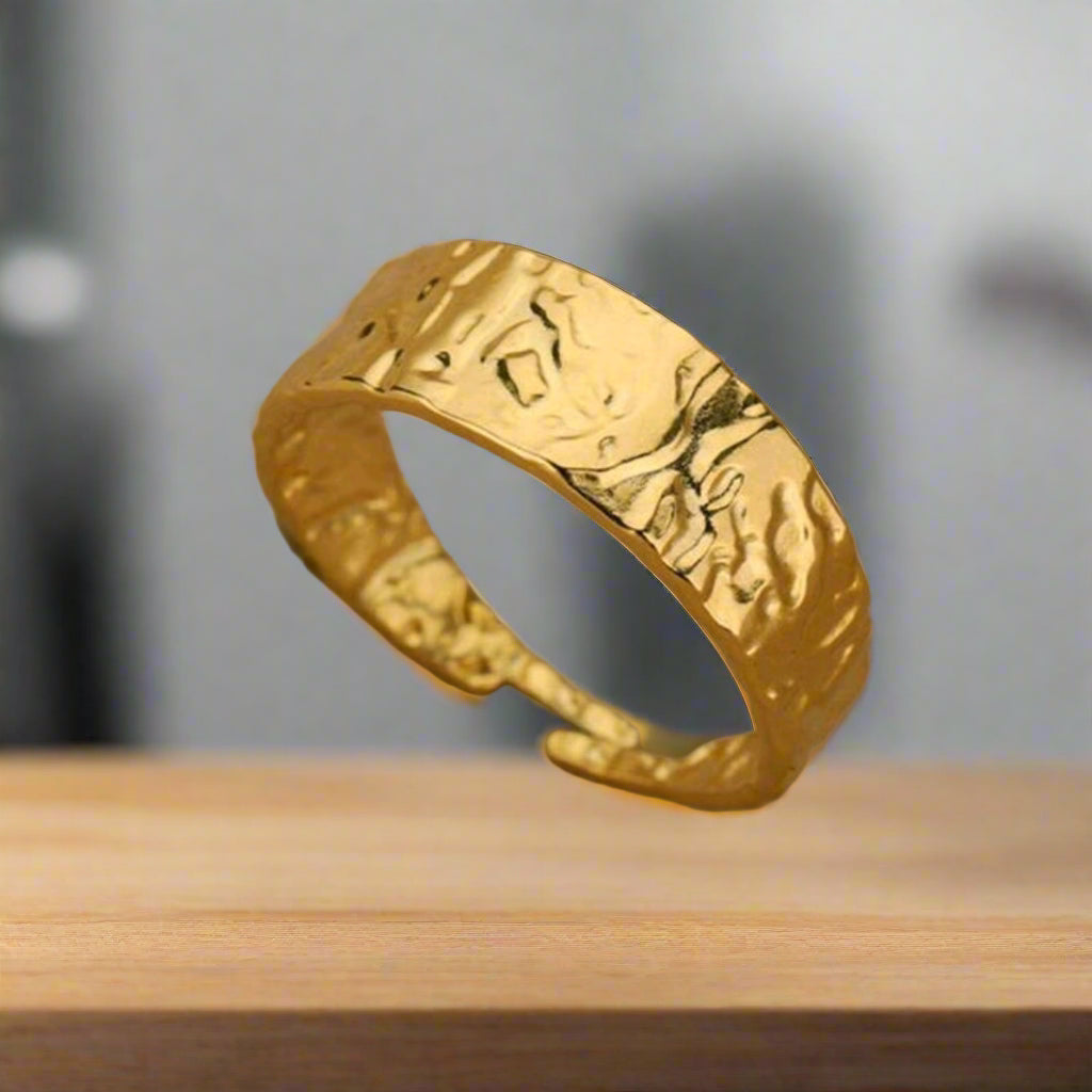 The Golden Whisper Ring is an adjustable 18k gold-plated piece that never tarnishes or rusts. Its sleek design makes it perfect for everyday wear or special occasions, adding a touch of elegance to any outfit. Enjoy lasting beauty with this timeless accessory!